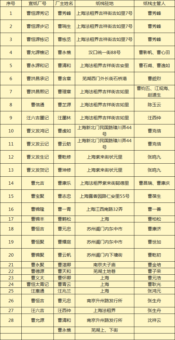 ??附2:民國時期涇縣宣紙廠家駐外地紙棧一覽表