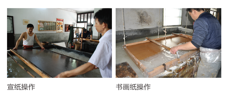 ??書畫紙大部分只用一種原料,在加工制作時(shí),對(duì)場(chǎng)地、土壤、水質(zhì)乃至工藝的要求不高,傳統(tǒng)制作只需十幾道,多則二十幾道工藝就能完成,一般都是由家庭式的小作坊來制作,對(duì)集體協(xié)作沒什么特別要求。也有很小一部分紙種是由集體操作,但對(duì)工藝精細(xì)程度要求不高。隨著大工業(yè)化程式加快,大部分書畫紙的漂白、蒸煮都使用了化工原料,加速了生產(chǎn)進(jìn)度,一般一個(gè)生產(chǎn)周期從傳統(tǒng)的將近一年時(shí)間縮短至3、5天。