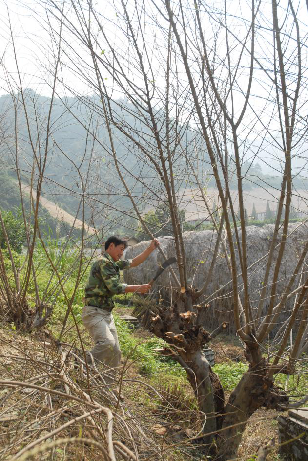 將砍下的枝條除去小枝椏、死枝椏,并將長(zhǎng)條、短條、粗條、細(xì)條、老條、嫩條分別歸類。