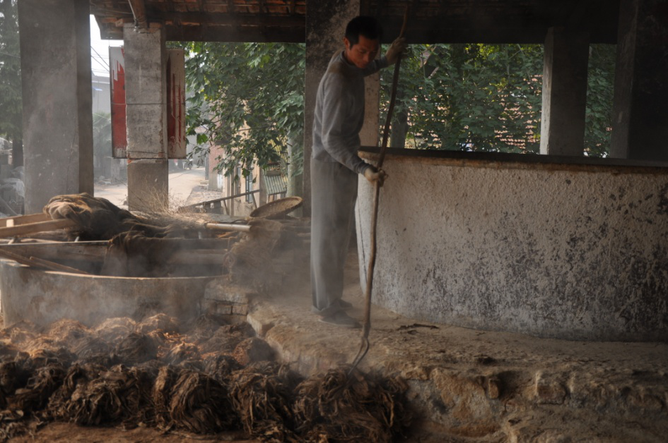 將小支合成一大支,灰渣凈后理齊扎緊。