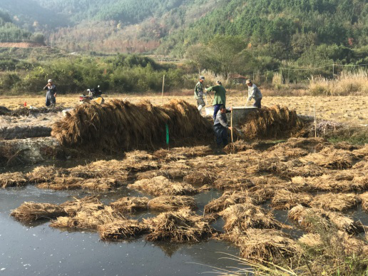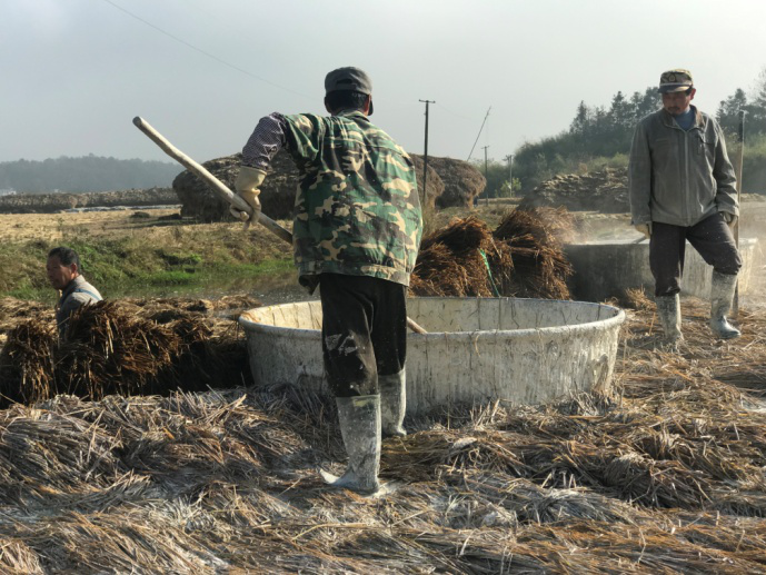 漿過灰的草束堆放進行靜止發(fā)酵。