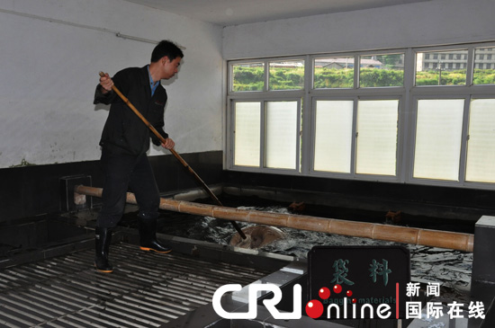 國際在線消息(記者 高山):在2008年北京奧運會開幕式上,有一段演出,以宣紙傳統(tǒng)工藝制作過程為背景,濃縮展示了中華文明的歷史長卷。一張輕薄、柔軟的宣紙,因何讓中國人追隨千年?今天,讓我們一起揭開紙中之王---宣紙的神秘面紗。中國宣紙文化園是記者此次探秘之旅的第一站,它位于安徽省涇縣,方圓四十畝。園中一棵青檀挺拔而立,舂碓敲打燎草擲地有聲,工人或曬紙,揮舞毛刷,汗流浹背;或撈紙,行云流水,令人叫絕……來自阿富汗的同行記者納齊布拉?馬爾就饒有興致地親自動手,制作了一張紙。馬爾很興奮地說:“這是我第一次自己做紙,真的很有意思。別看撈張紙只要幾秒鐘時間,還真不簡單。前幾次由于我力氣用得不對,或者角度有偏差,紙都破了。不過,最后我還是成功了!這次體驗對于我來說很有意義,我親手觸碰到了中國古老的文化。”