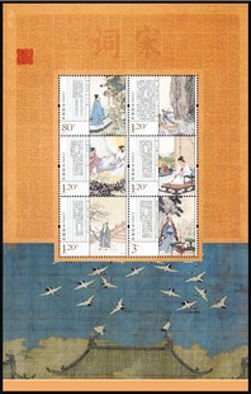 日前,2012年北京國際郵票錢幣博覽會在中國國際貿(mào)易中心舉行。為配合此次博覽會,博覽會特供郵票——《宋詞》宣紙小版張于郵展開幕當(dāng)天隆重發(fā)行。這次發(fā)行的《宋詞》宣紙小版張與此前發(fā)行的“宋詞”郵票,在發(fā)行形式、材質(zhì)等方面均不同。郵票的材質(zhì)采用的是“紅星牌”宣紙,全套六枚,設(shè)計精美,是集郵愛好者的又一收藏?zé)崞贰?/span>