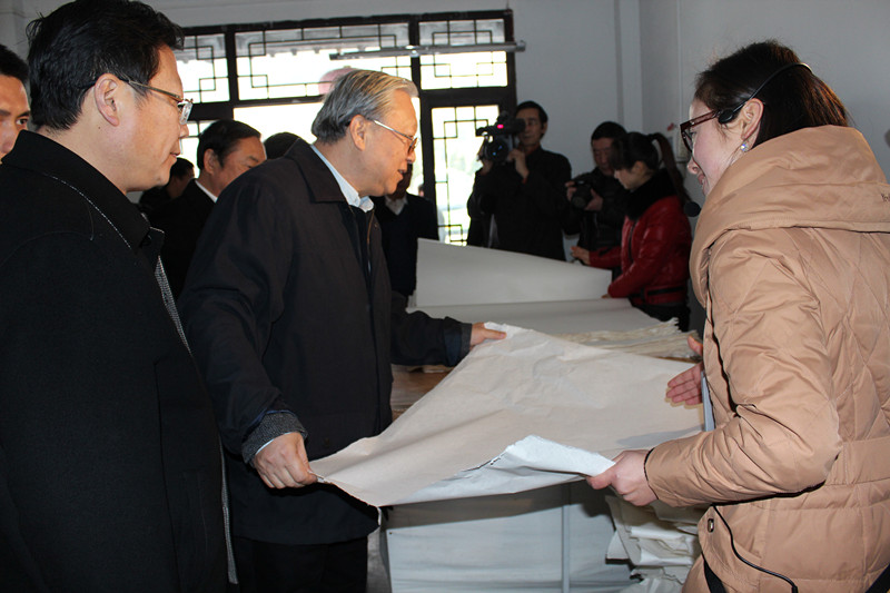 2013年1月11日下午,十一屆人大常委會副委員長路甬祥在縣領(lǐng)導(dǎo)的陪同下參觀指導(dǎo)中國宣紙文化園。