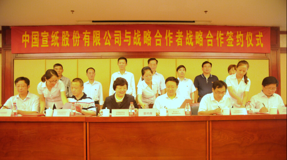 8月18日,中國(guó)宣紙股份有限公司與戰(zhàn)略合作者在皖南國(guó)際大酒店舉行戰(zhàn)略合作簽約儀式。公司黨委書記、董事長(zhǎng)胡文軍與中國(guó)通用咨詢投資有限公司總經(jīng)理劉昆、科大訊飛股份有限公司董事長(zhǎng)劉慶峰、宣城市國(guó)有資產(chǎn)投資有限公司總經(jīng)理王翔、涇縣常務(wù)副縣長(zhǎng)肖陽(yáng)、涇縣財(cái)政局王勇在關(guān)于中國(guó)宣紙股份有限公司的增資協(xié)議上簽字,這標(biāo)志著我公司與引進(jìn)的戰(zhàn)略合作伙伴正式牽手合作。市長(zhǎng)韓軍、縣委書記郭金友、縣長(zhǎng)王華等市縣領(lǐng)導(dǎo)、我公司領(lǐng)導(dǎo)班子成員及國(guó)元證券股份有限公司總裁俞仕新等出席簽約儀式,儀式由縣長(zhǎng)王華主持。