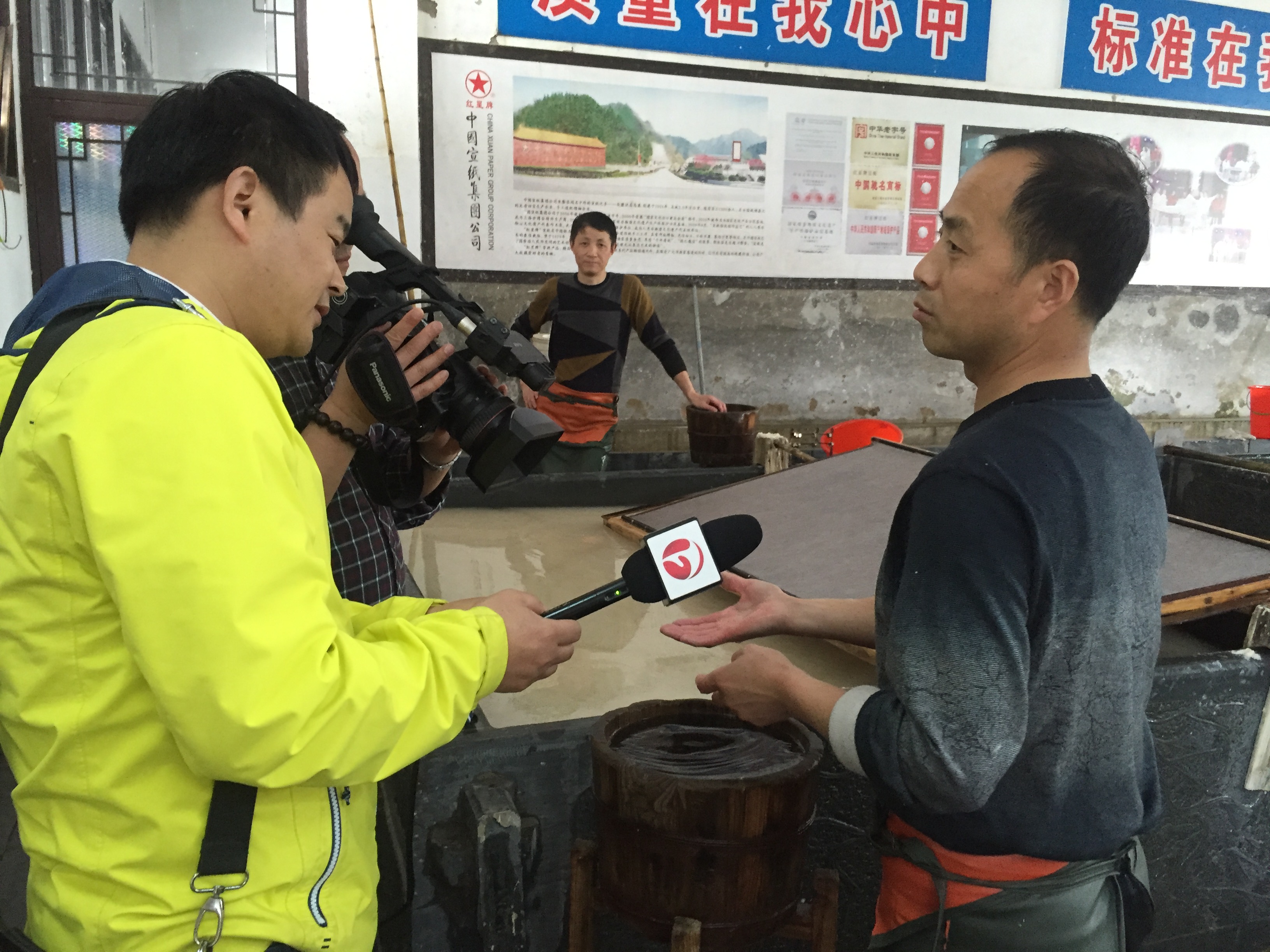 “剛開始學(xué)撈紙的時候我也覺得很辛苦,三天就不想做了,可是后來慢慢堅持下來,隨著技藝的成熟,我對撈紙也熱愛起來了,這一堅持就是三十年。”面對記者的采訪,周東紅靦腆地說到。撈紙工藝繁瑣單調(diào),需要每天不斷的重復(fù),正是由于這份對宣紙的獨特感情,周東紅才會三十年如一日堅持下來了?!白钪匾氖且WC每張紙的質(zhì)量。”周東紅告訴記者,撈、曬、剪是宣紙制造的最后三道工序,其中撈紙是最重要的一項。憑借豐富的經(jīng)驗和認真的態(tài)度,周東紅至今保持產(chǎn)品成品100%的記錄。記者還采訪了中國宣紙有限公司副總經(jīng)理,他表示周東紅是公司的寶貴財富,也是公司全體員工的榜樣,公司為周東紅驕傲,同時他還表示,當今的中國需要這樣一種“工匠精神”。