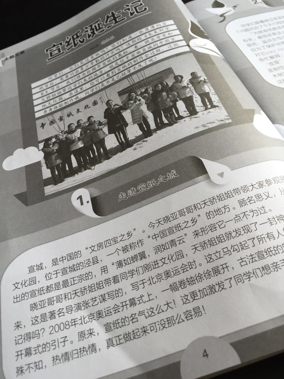 沿溪紙碓無停息,一片舂聲撼夕陽。2016年5月的這一期由江蘇教育頻道編輯部主辦的《未來科學(xué)家》雜志上這樣形容夕陽降臨下的中國宣紙文化園。今年年初,江蘇教育電視臺未來科學(xué)家欄目組來我公司拍攝了一期春節(jié)特別節(jié)目,節(jié)目播出后,收到了廣大青少年的熱烈反響。2016年5月,《未來科學(xué)家》雜志又以宣紙為主題,刊登了《宣紙誕生記》、《紙為你來》等文章,詳細(xì)介紹了宣紙的歷史文化和宣紙技藝以及當(dāng)時的拍攝情景,還刊登了周東紅的人物專訪《不忘初心,方得始終》,向在自己崗位上兢兢業(yè)業(yè)的工作者們致敬,最后還刊登了烏溪小學(xué)葉晨陽的一篇感想《薄薄宣紙不簡單》,小學(xué)生葉晨陽在參與完拍攝以后發(fā)出了宣紙是多么古老,多么獨特,不愧是紙壽千年,千年紙王的感嘆。