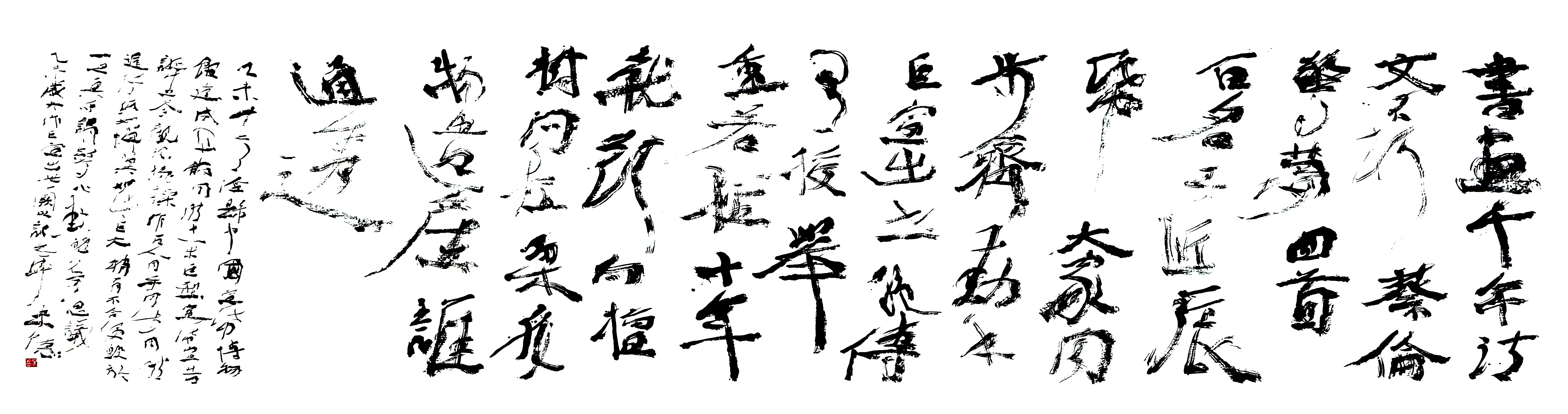 書(shū)畫(huà)千年,詩(shī)文不朽,蔡倫驚夢(mèng)回首。百名工匠一張紙,大家同步齊動(dòng)手。巨宣出世,絕傳有授,舉重若輕十年就。欲向檀樹(shù)問(wèn)輕柔,非物遺產(chǎn)誰(shuí)通透。 題識(shí):乙未十二月初,涇縣中國(guó)宣紙博物館建成開(kāi)館。同時(shí)十一米巨型宣紙宣告誕生。參觀現(xiàn)場(chǎng)操作,百人同手同步同時(shí)進(jìn)行,紙如蟬翼,如此巨大,稍有不合便毀于一旦。真所謂,驚心動(dòng)魄,不可思議!乙未歲冬,作巨宣出世一闕以記之耳,來(lái)德。