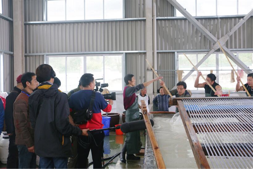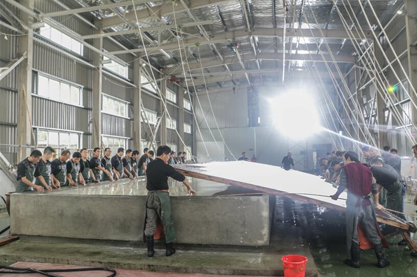榮獲吉尼斯世界記錄的三丈三巨宣今天恢復(fù)生產(chǎn)啦!三丈三自面世以來,以其對宣紙規(guī)制的歷史性突破、無與倫比的生產(chǎn)場面、極高的藝術(shù)載體與收藏價值,得到了社會各界、攝影家、書畫家和市場的厚愛與贊譽。今天,又一央視大型紀錄片將鏡頭聚焦三丈三巨宣。下面,讓小編帶你感受震撼的現(xiàn)場!