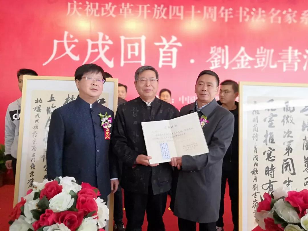 ??12月1日上午,由中國宣紙股份有限公司主辦,中國宣紙博物館、石家莊貢宣齋文化用品銷售有限公司承辦的慶祝改革開放四十周年書法名家系列邀請展暨“戊戌回首˙劉金凱書法作品展”在中國宣紙博物館隆重開幕。