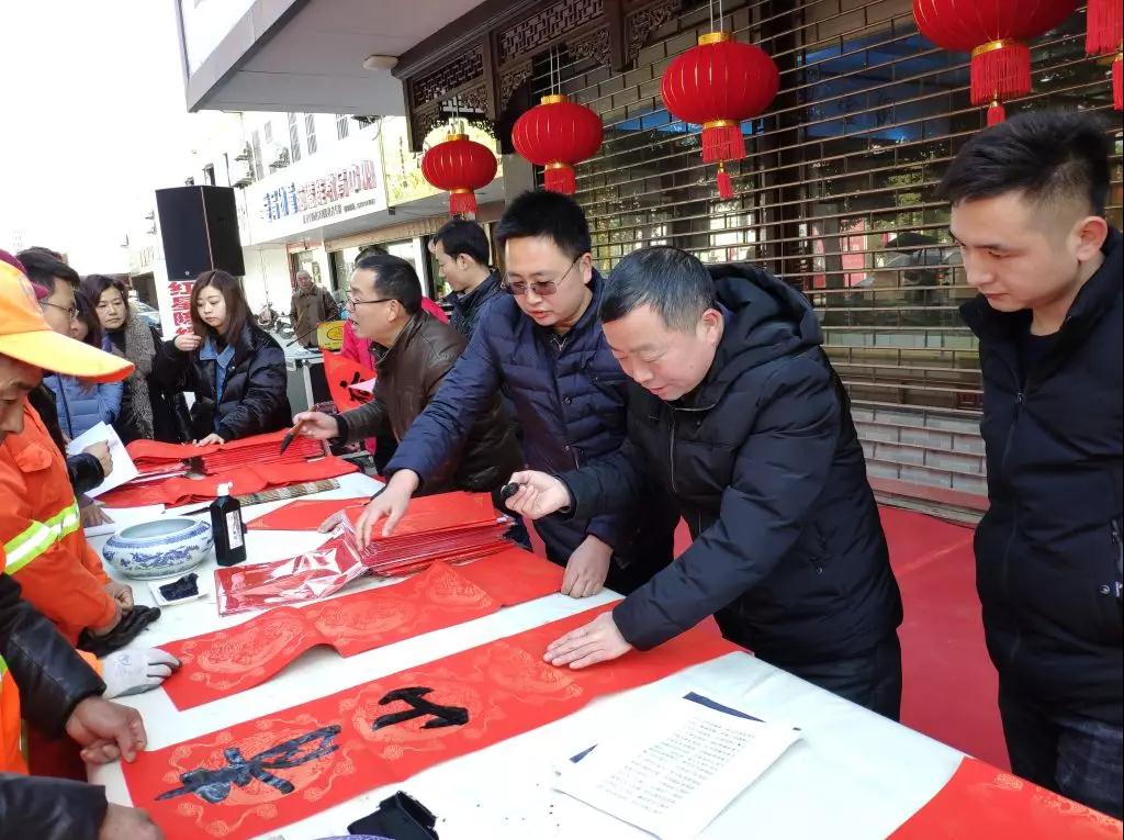 ??展廳內(nèi),一幅幅作品琳瑯滿(mǎn)目,前來(lái)參觀的市民絡(luò)繹不絕。參展書(shū)畫(huà)家不斷揮毫,為環(huán)衛(wèi)工人及市民寫(xiě)下一張張新春祝福,得到了熱烈歡迎和好評(píng)。