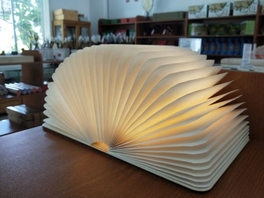 可以折疊的宣紙書燈就是宣紙走向家居的一個(gè)嘗試。閉合是一本書,打開是一盞燈,在燈光的照射下,宣紙獨(dú)有的纖維清晰可見。