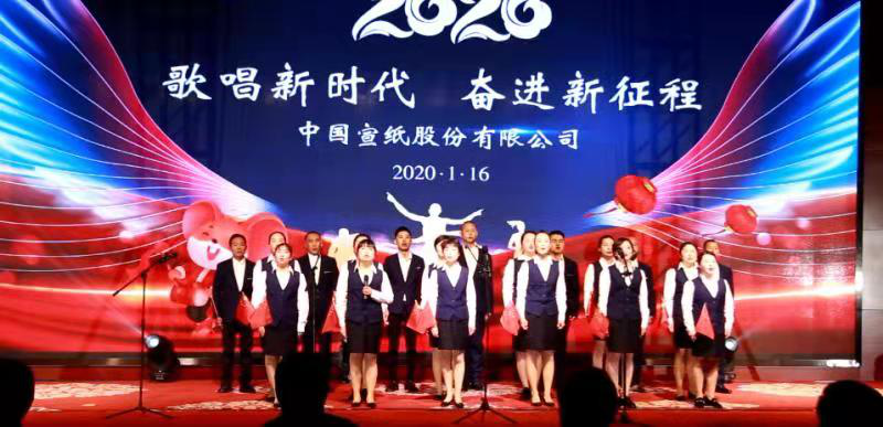 2020年1月16日下午,由中國宣紙股份有限公司舉辦,中國宣紙股份有限公司工會承辦的“歌唱新時代,奮進新征程”迎新春年會活動在涇縣愛晚中心拉開了帷幕。董事長胡文軍代表公司致辭,回顧了2019年所取得的成績,對2020年提出了更高的目標,同時對全體員工致以新年的祝福。