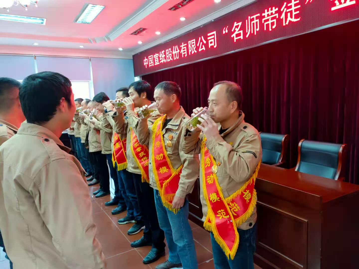 年輕員工效仿先輩,通過集體見證的方式,向師父?jìng)兙床栊卸Y。
