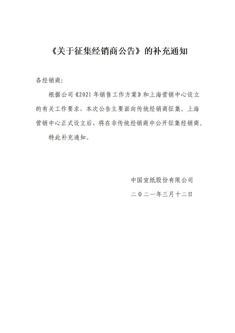 關(guān)于征集經(jīng)銷商的公告及補充通知