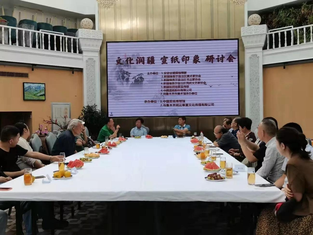 紅星宣紙專家團(tuán)隊與新疆藝術(shù)家從宣紙制作到藝術(shù)創(chuàng)作等方面進(jìn)行了研討交流。