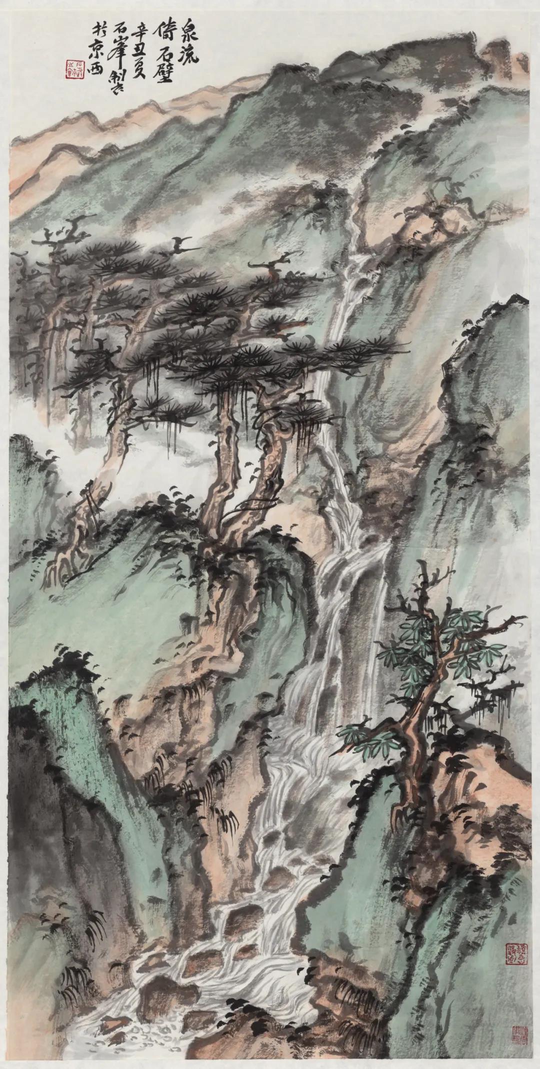石峰 泉流倚石壁100×50厘米 創(chuàng)作年代:2021年