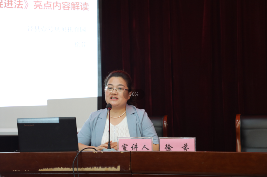 家庭教育關系未成年人的終身發(fā)展和家庭的幸福安寧,也關系國家發(fā)展和民族進步。為讓更多家庭學習和掌握家庭教育常識,巾幗宣講員徐芬為大家解讀了《中華人民共和國家庭教育促進法》,讓家長了解到家庭教育的內容、方法和應該承擔的責任。她深入淺出的解讀讓現場觀眾受益匪淺,“這樣的普法宣傳開展的很有必要”,現場觀眾發(fā)自內心地說道。