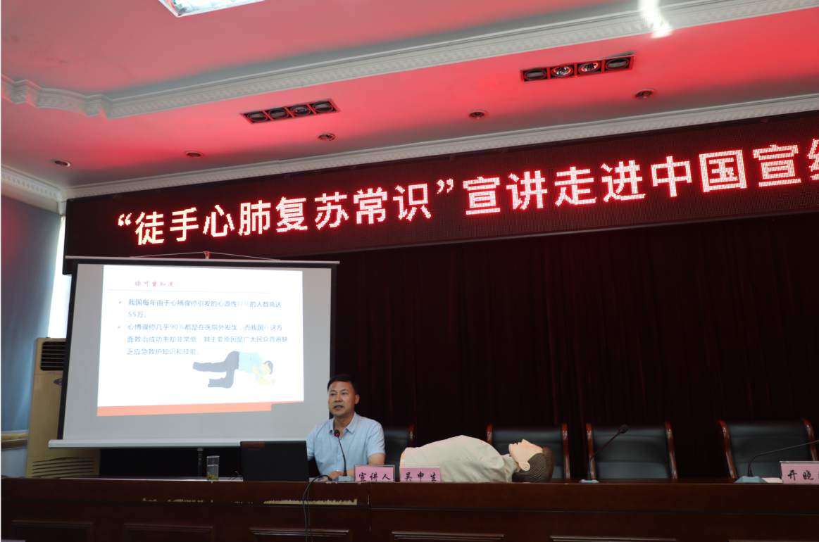 活動還邀請到縣紅十字會秘書長吳申生講解“徒手心肺復蘇常識”,通過他詳細的講解和示范演練, 讓大家在學習到急救知識的同時,還提高了以后在遇到公共及個人突發(fā)事件等應急場景下的自救和互救能力。