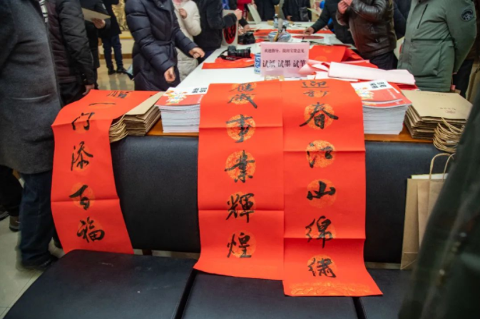 在紅星美術館展廳內,參展的作品琳瑯滿目,觀展的市民絡繹不絕。參展書畫家不斷揮毫,為市民們寫下一幅幅對聯(lián)和一張張“?!弊?,受到了熱烈歡迎和好評。