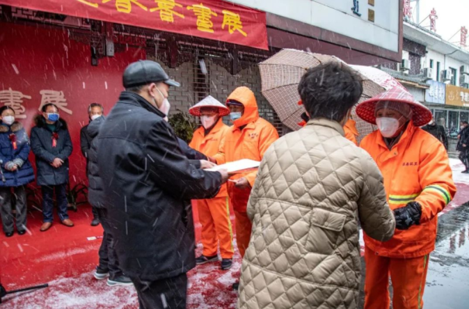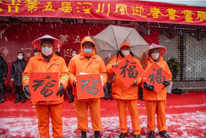 開幕式上,縣人大副主任宋軍、縣政府副縣長黃凰、縣政協(xié)副主席程德修、縣書協(xié)主席管兵共同向四位環(huán)衛(wèi)工人代表贈送春聯(lián)、“福”字,表達了對“城市美容師”辛勤勞作創(chuàng)造美好環(huán)境的敬意和誠摯祝福。
