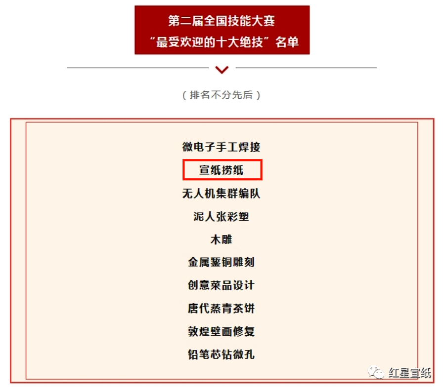 第二屆全國技能大賽,于9月16日至19日在天津舉辦。其中“宣紙撈紙”榮獲“最受歡迎的十大絕技”之一。