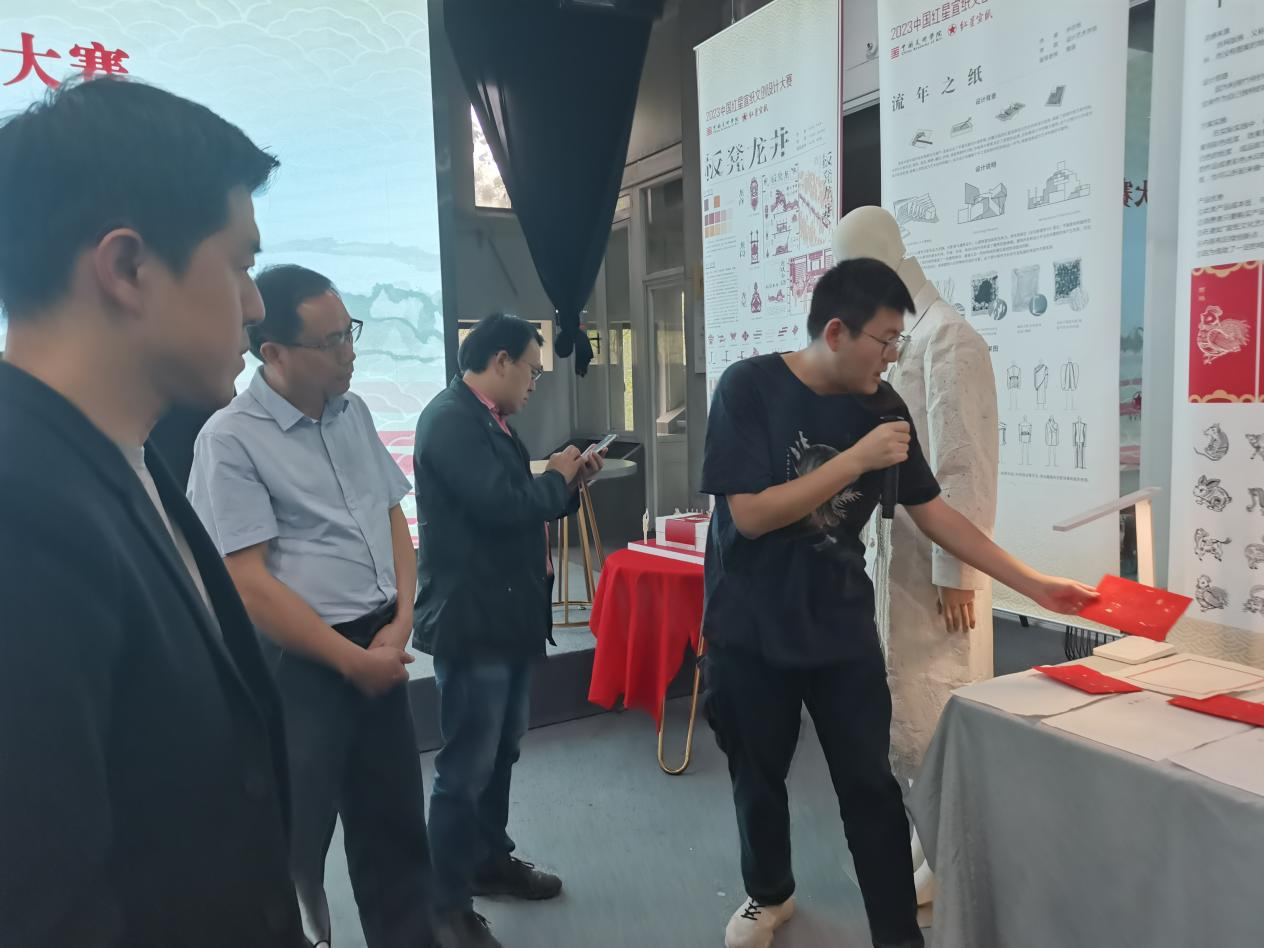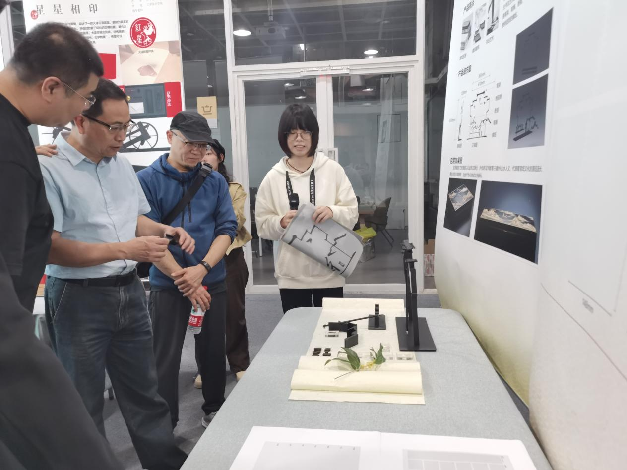 此次活動(dòng)展示了以“紅星宣紙”為元素創(chuàng)作的文創(chuàng)作品共計(jì)19件。評(píng)審現(xiàn)場(chǎng)開曉陸和中國(guó)美院學(xué)工部部長(zhǎng)韓亮等指導(dǎo)老師對(duì)學(xué)生作品逐一觀看、點(diǎn)評(píng),最終評(píng)審出:一等獎(jiǎng)兩項(xiàng)、二等獎(jiǎng)五項(xiàng)、三等獎(jiǎng)八項(xiàng)。開書記向同學(xué)們表示祝賀,并為每組參賽同學(xué)頒發(fā)“紅星牌”宣紙作為獎(jiǎng)勵(lì),希望大家能用紅星宣紙創(chuàng)作出更多更好的作品。本次參賽作品將于宣紙藝術(shù)節(jié)期間在中國(guó)宣紙文化園進(jìn)行展覽,屆時(shí)歡迎大家前來觀展。