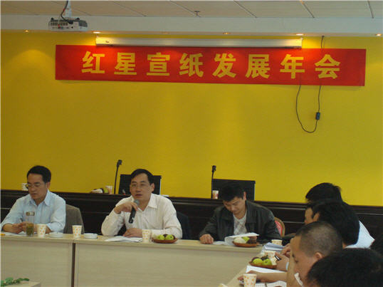 2009年2月13日,中國宣紙集團(tuán)公司在廣州舉行“紅星宣紙發(fā)展年會(huì)”,公司董事長肖陽同志主持會(huì)議,來自部分主管部門、縣直單位、金融系統(tǒng)的主要負(fù)責(zé)人及部分重要客戶參加了會(huì)議。會(huì)議聽取了公司2008年各項(xiàng)工作開展情況的匯報(bào),并就下一步工作目標(biāo)展開研討,共商公司發(fā)展大計(jì)。縣委常委、副縣長左銀海同志到會(huì)作了重要講話。會(huì)議結(jié)束后,專門針對(duì)廣州一地的宣紙市場進(jìn)行了考察。