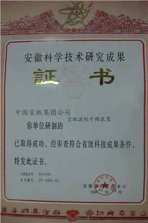 9月14日,“宣紙濕帖干燥裝置”項(xiàng)目領(lǐng)到了由安徽省科技廳頒發(fā)的省級(jí)科技成果證書。這也是宣紙行業(yè)內(nèi)的第一項(xiàng)省級(jí)科技創(chuàng)新成果。今年5月,宣城市科技局受省科技廳委托在我公司召開專項(xiàng)項(xiàng)目成果鑒定會(huì),“宣紙濕帖干燥裝置”項(xiàng)目順利通過(guò)鑒定。