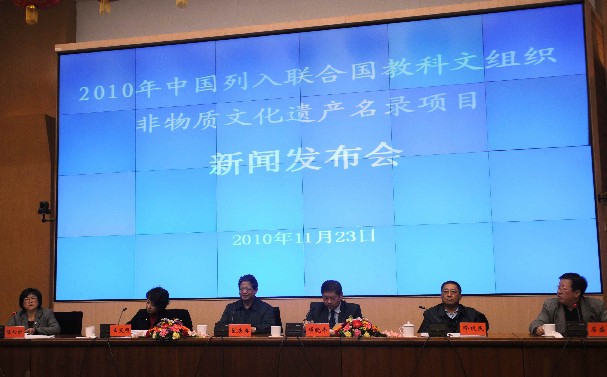 11月23日,文化部在京舉辦新聞發(fā)布會,通報2010年中國列入聯(lián)合國教科文組織非物質(zhì)文化遺產(chǎn)相關(guān)名錄項(xiàng)目情況。