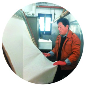“宣紙制作技藝”國家級代表性傳承人邢春榮演示精妙揭紙。