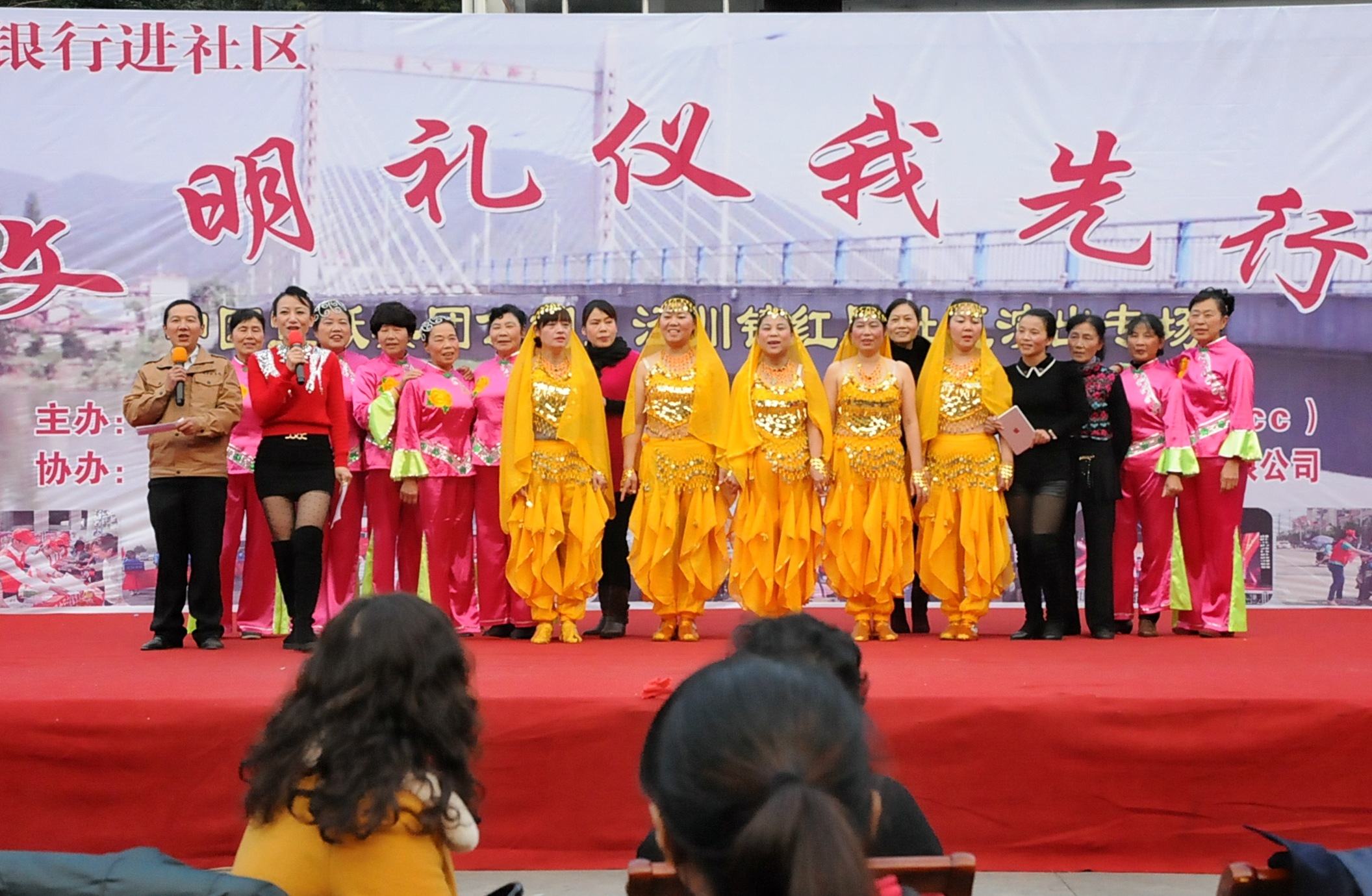 下午三點(diǎn)在一片鑼鼓聲后,精彩節(jié)目上演。節(jié)目有歡快的舞蹈《中國(guó)夢(mèng)》、激昂的詩(shī)朗誦《文明禮儀伴我行》、深情的獨(dú)唱《我愛你》、更有交警以舞蹈的形式現(xiàn)場(chǎng)說(shuō)法《交通安全人人講》、也有老票友的黃梅戲演唱、有勸人友善的詩(shī)朗誦《學(xué)會(huì)寬容》,讓人耳目一新的印度舞蹈《熱舞媚娘》,還有讓人連連稱贊的我公司員工創(chuàng)作的快板《贊涇川》,最后匯演以大合唱《文明在哪里》結(jié)束。
