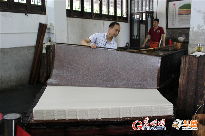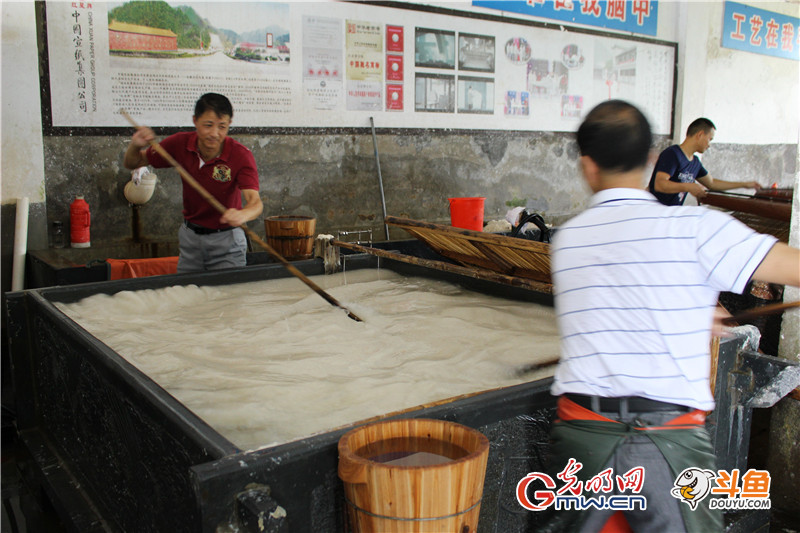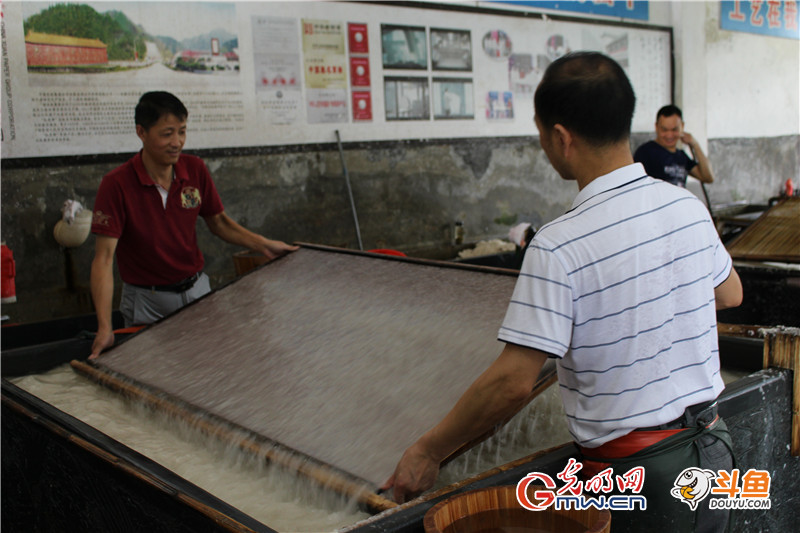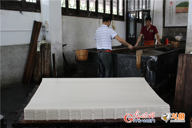 在部分斗魚網(wǎng)友看來周東紅和戴勝所在的古法車間主要是供游客參觀,對(duì)工作量要求勢(shì)必沒有那么嚴(yán)苛,周東紅連連擺手,告訴網(wǎng)友其實(shí)和在大廠的車間是一樣的,每天要撈900-950張四尺宣紙。當(dāng)然,對(duì)于周東紅而言這當(dāng)然不是最高工作量,高峰時(shí)一天撈過1400張。因?yàn)榧妓嚲?,周東紅帶過了徒弟有20多個(gè),事實(shí)上,在技術(shù)崗位帶徒弟并不是一件費(fèi)力討好的事,周東紅說,帶徒弟就意味著有好幾個(gè)月廢品率會(huì)提升,影響產(chǎn)量不說,也影響對(duì)自己業(yè)績(jī)的考核,所以廠里有許多師傅不愛帶徒弟。但他覺得既然是工匠,那只有傳承下去,手藝才能有延續(xù),否則等老一輩干不動(dòng)了,技藝也就漸漸失傳,這對(duì)于一個(gè)千年都靠著宣紙制作繁衍生息的地方來說,就太悲哀了。