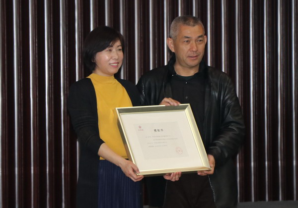 發(fā)布會現場舉行了授牌儀式,中國宣紙股份有限公司副總經理曹志剛先生親手將“紅星宣紙河南區(qū)域總代理”牌交給大河畫廊總經理崔俊芳。