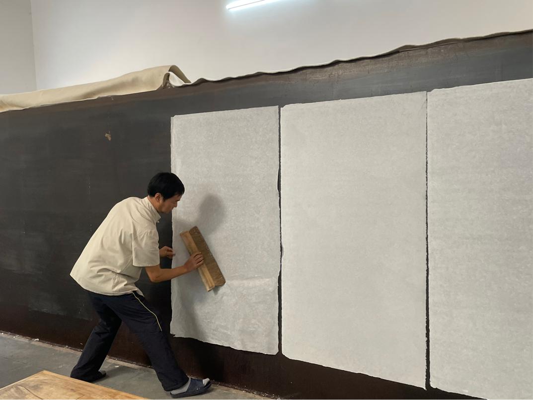 ??“宣紙薄如蟬翼,進(jìn)行紙張分離、曬到牌面上的難度較大。另外,在牌面上用刷子刷的時(shí)候,刷子的力道很重要。刷重了刷痕很重,刷輕了紙張就報(bào)廢了。所以曬紙這道工序的精髓在于貼紙、刷紙這兩步?!泵珓倮榻B說(shuō)。